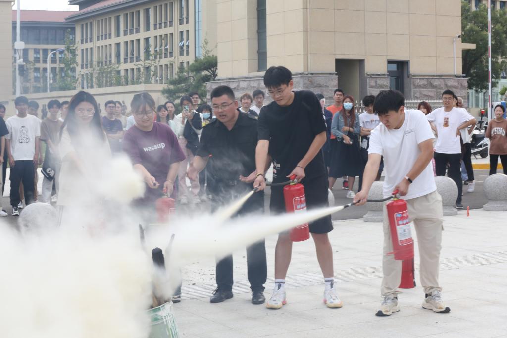 讲座结束后,学院组织学生展开了火灾逃生演练、逃生屋体验和常见灭火器的使用实操,通过实地实练让大家掌握了多种消防技能,进一步锻炼了学生的火灾应急能力和逃生能力,并检验了新校区的消防控制系统。