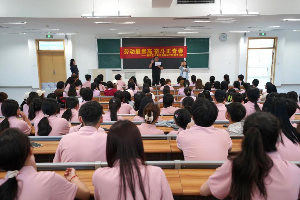4月26日下午,在“五.一”国际劳动节来临之际,服装艺术系在二号教学楼507教室组织学生开展“劳动最崇高 奋斗正青春”劳动主题教育活动。