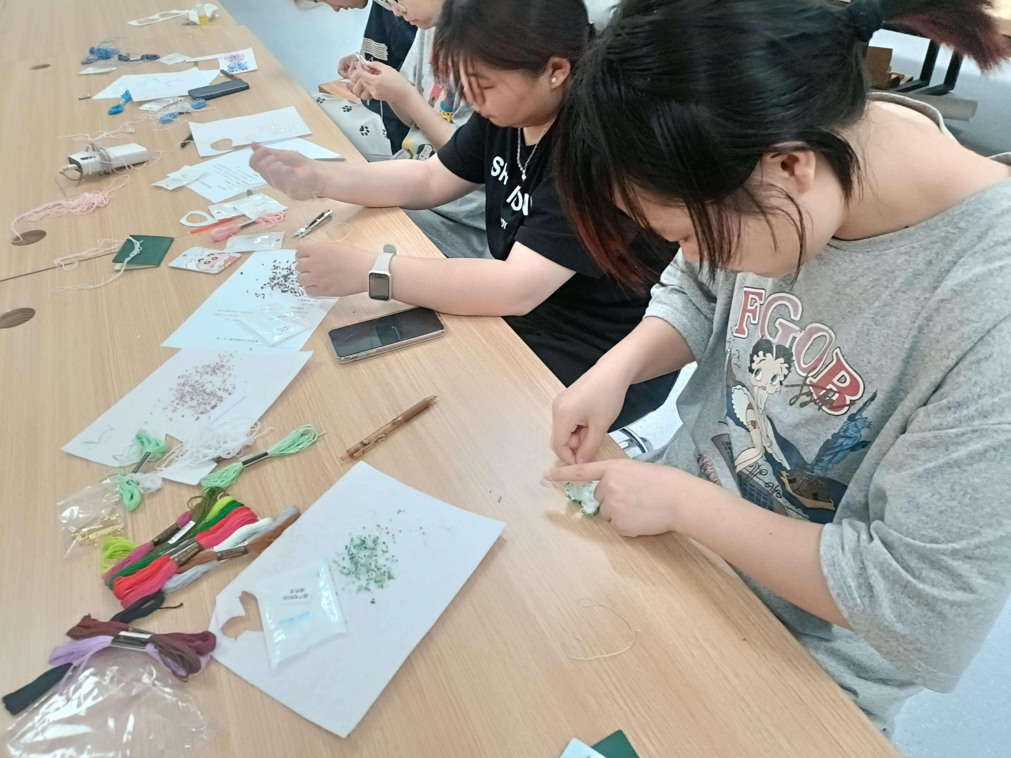 配饰设计项目要求选手围绕特定主题,运用赛场统一提供的材料完成创意设计与实物制作,突出对设计创意、材料运用及手工技巧的综合考验;配饰设计比赛中,学生围绕考题给定动物主题进行胸针的实物创作,将动物元素与珠绣技艺相结合,通过一针一线的细腻勾勒,在胸针作品中呈现传统工艺的韵味,珠绣工艺的运用不仅展现了学生对传统美学的理解与传承,更体现了其在材料运用和手工制作技巧方面的专业能力。
