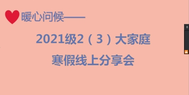 借力云端走进学生心灵,持续进行感恩教育,树立学生感恩意识,让感恩和励志的力量在学生心中萌生,进一步鼓励学生在感恩奋进中励志筑梦。如2020级3(3)班寒假“感谢有你”主题关爱活动、2021级服装2(3)班“暖心问候——寒假线上分享会”等关爱活动,孩子们在假期中帮父母做力所能及的事情,感悟生活的艰苦、体会父母的不易,激发学生热爱父母、热爱老师;感恩父母、感恩老师的情感,并立志做讲感恩、懂奉献、知奋斗的时代青年。