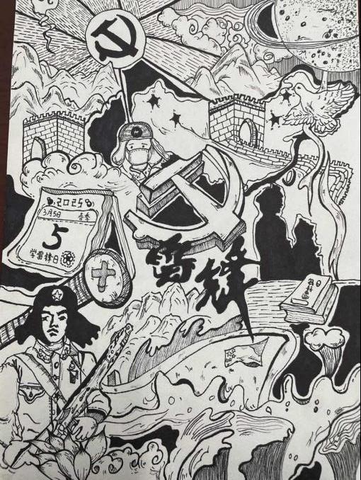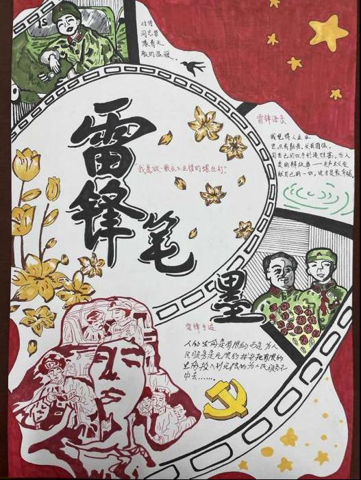 为进一步加深同学们对雷锋精神的理解与感悟,服装艺术系团总支举办了学雷锋书画比赛。活动得到了学生的热烈响应,收到了大量优秀作品。绘画作品中,有的生动描绘了雷锋帮助战友修车的场景,有的细腻刻画了雷锋帮助困难群众的情景,有的绘出了雷锋专注看书的画面,色彩鲜明、笔触灵动,将雷锋的形象鲜活地展现出来;书法作品则以刚劲有力或飘逸灵动的字体,书写着雷锋的名言警句、感人故事,一笔一划都饱含着对雷锋精神的敬仰。