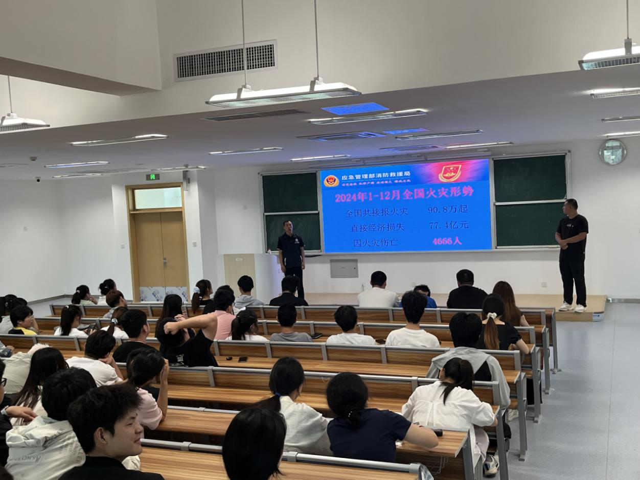 讲座伊始,消防专家郭老师以近年来发生的典型火灾案例为切入点,通过触目惊心的视频和图片资料,直观地向同学们展示了火灾的危害性和严重性,强调了掌握消防安全知识与技能的重要性和紧迫性。深入浅出地讲解了火灾的成因、分类、预防措施以及火灾发生时的逃生自救方法,让同学们对消防安全有了更为全面和深入的认识。