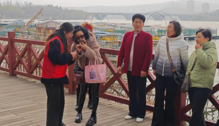 与此同时,“服务调查组”的志愿者们则承担了智慧助老与无障碍环境体验评估双重任务。她们设立流动服务点,热情帮助园内老年游客使用智能设备拍照、查询信息,助力跨越“数字鸿沟”;同时“体验者”身份,系统性走访、测试并记录了公园内无障碍通道、坡道、卫生间等设施的完好与通畅情况。