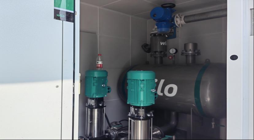 学院教工楼供水社会化改造工作取得阶段性进展,教工楼专用无负压供水设备安装调试完成,具备供水条件。