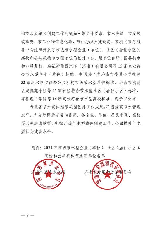 近日,济南市城乡水务局等部门联合印发《关于公布2024年市级节水型企业(单位)、社区(居住小区)、高校和公共机构节水型单位的通知》,kaiyun开云官方在线入口校园节水建设项目获得区县、市级政府部门的充分认可,符合节水型高校标准。