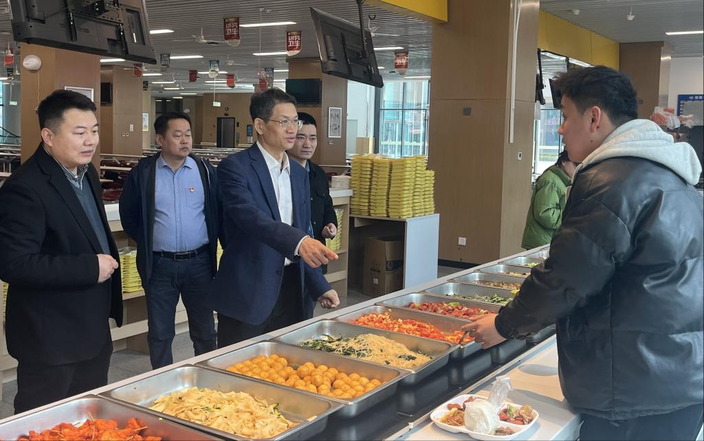 餐前,李心沁、车荣晓同后勤管理处、安全保卫处相关人员一同深入食堂后厨、库房等重点区域,详细检查了原材料采购、食品留样、环境卫生、消防安全等环节。