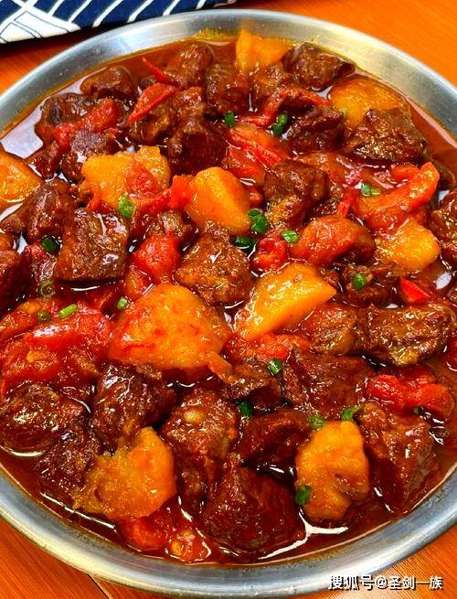 6. 加入土豆和胡萝卜:将切好的土豆和胡萝卜块加入锅中,翻炒几下,让蔬菜与牛腩充分混合。