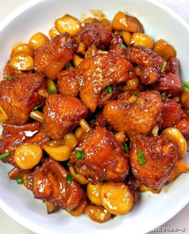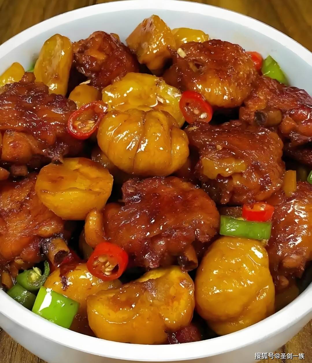 4. 加入没过鸡块的清水,放入板栗,大火烧开后转小火焖煮30 - 40分钟,最后大火收汁,汤汁浓稠即可。