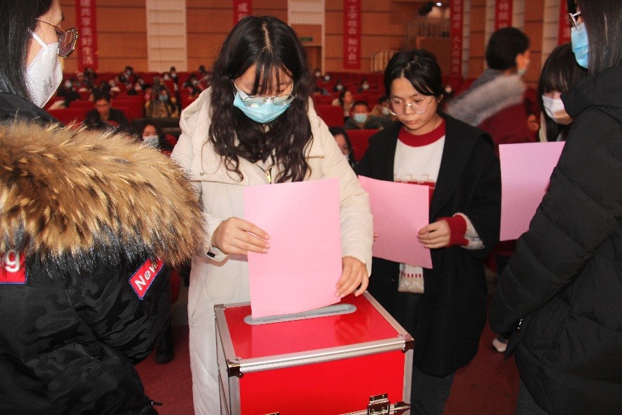 通过全体代表的差额投票选举,大会最终确定黄艳华、陈立、徐金增、潘岩、王新、侯玉姣、谢春宇、李林笑、司源等9名同志当选为学院第一届团委委员。
