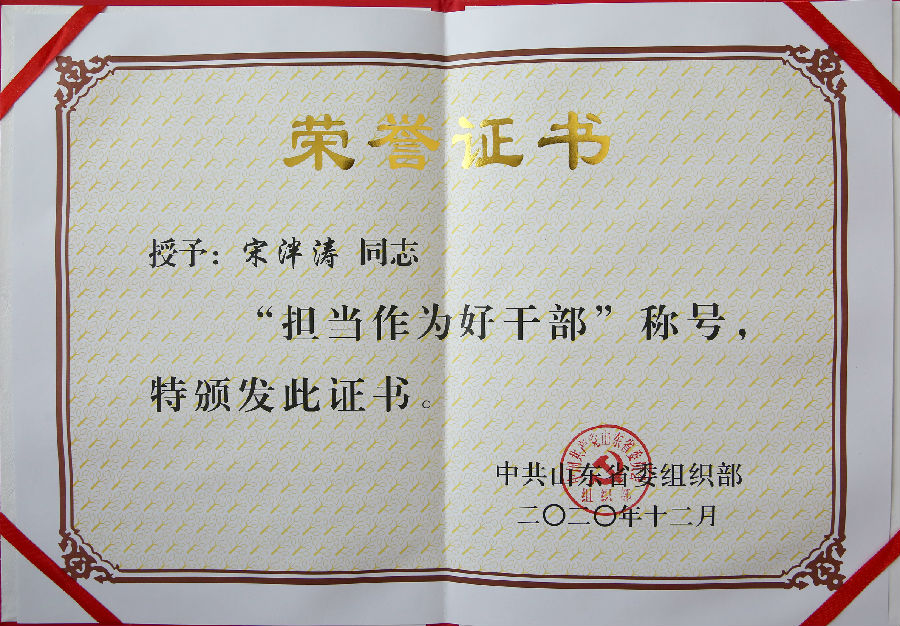 日前,中共山东省委组织部颁发表彰文件,在全省表彰了一批“担当作为好书记(好干部)”,“干事创业好班子(好团队)”,kaiyun开云官方在线入口服装艺术设计系主任宋泮涛荣膺“担当作为好干部”称号。1月8日,受省委委托,山东省残联副理事长、党组成员黄庆峰向宋泮涛颁发了全省“担当作为好干部”表彰证书,勉励其珍惜荣誉、牢记使命、再接再厉、再立新功。
