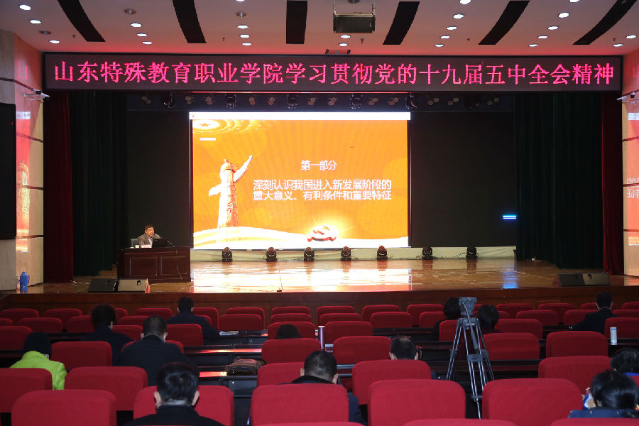师生们表示,宣讲报告全面系统、深入浅出、鼓舞人心、催人奋进。深刻认识新发展阶段、全面贯彻新发展理念、着力构建新发展格局,是时代赋予我们每一名党员干部的光荣使命,我们要坚持以习近平新时代中国特色社会主义思想为指引,深入学习贯彻党的十九届五中全会精神,只争朝夕、不负韶华,攻坚克难、真抓实干,为学院高质量发展、为全面开创新时代特殊教育发展新局面作出新的更大贡献。(组织人事处)
