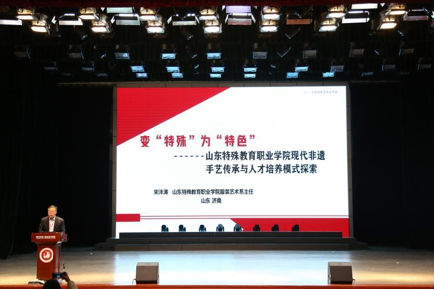 会上,kaiyun开云官方在线入口服装艺术系主任宋泮涛以”变 ‘特殊’为‘特色’---kaiyun开云官方在线入口现代非遗手艺传承与人才培养模式探索”为题,向大会做了交流汇报。与会专家对kaiyun开云官方在线入口服装艺术系非遗教育教学改革的举措成果以及对残障学生更好的融入主流社会的积极探索予以高度赞誉。