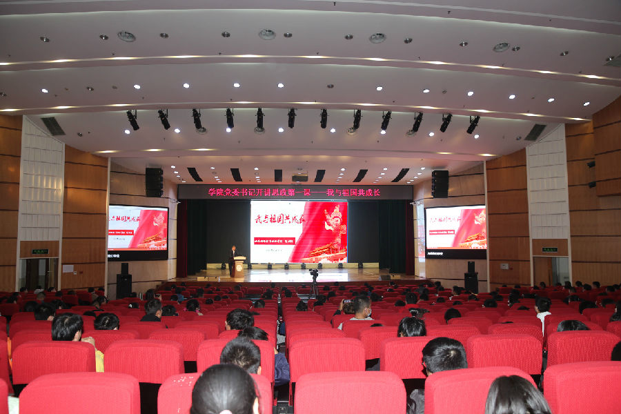 10月19日下午,学院党委书记管洪锋在学院大礼堂以《我与祖国共成长》为题,为2020级特殊教育系、信息技术系、艺术设计系全体新生讲授“思政第一课”。