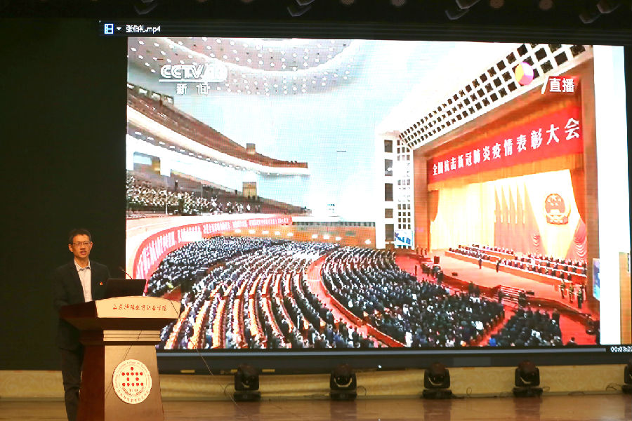 李院长从医者的“仁”爱之心谈起,向学生传授学习中医之“道”。李院长介绍了中医悠久的文化历史,重点谈了在抗击疫情中,中西结合并用,“三药三方”发挥的巨大作用。以“人民英雄”院士张伯礼为榜样激励学生,致敬医者初心,传承医者的责任之心。希望同学们遵循中医药发展规律,传承精华,守正创新,学有成就,回报社会。