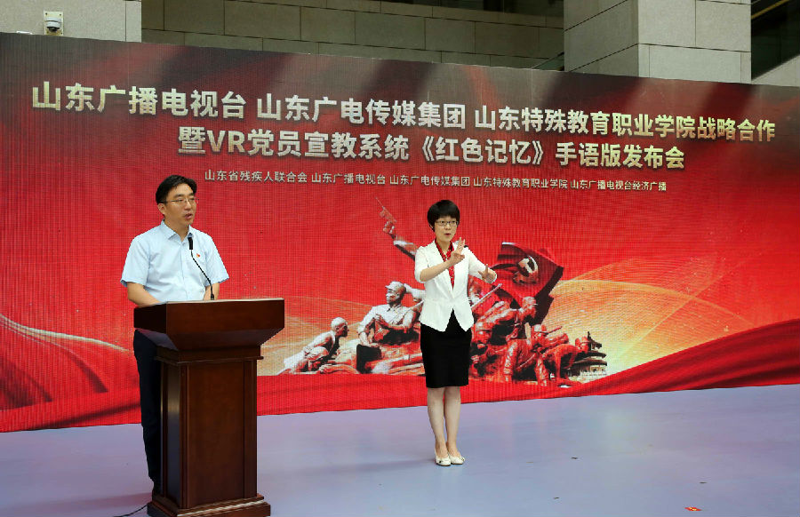 山东广播电视台党委副书记张卫华在发布会致辞中表示,山东广播电视台、山东广电传媒集团将鼎力支持双方的合作,未来双方的合作空间将更加广阔;张卫华指出,VR党员宣教系统《红色记忆》由山东广电视觉科技以当下最前沿、最时尚的VR互动影像作为表现形式,与kaiyun开云官方在线入口联合升级制作的《红色记忆》手语版更具开创意义,为听障人士带来直观、便捷、全新的观看体验,从而帮助听障人士更加充分的融入到党建工作中,实现了无缝覆盖宣教人群,全面展现爱国主义教育基地丰富而博大的精神内涵。