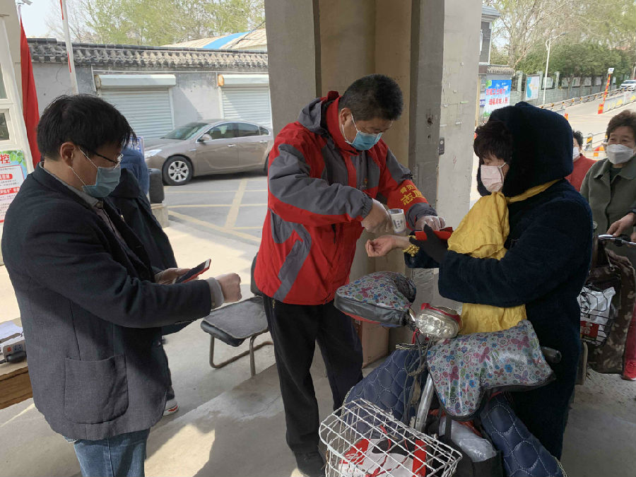 党委书记管洪锋同志以普通党员身份,带头到社区报到,自觉服从社区党组织统一安排,在鲁贤社区大学仕花园小区门口开展疫情防控志愿服务,对出入小区人员及车辆进行登记、测量体温、扫描身份证和健康码等,提醒进出小区的居民提高自我保护意识、加强自我防控,牢固构筑起疫情防控的第一道防线。