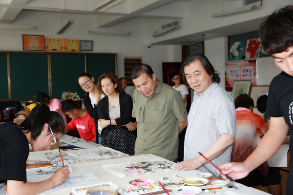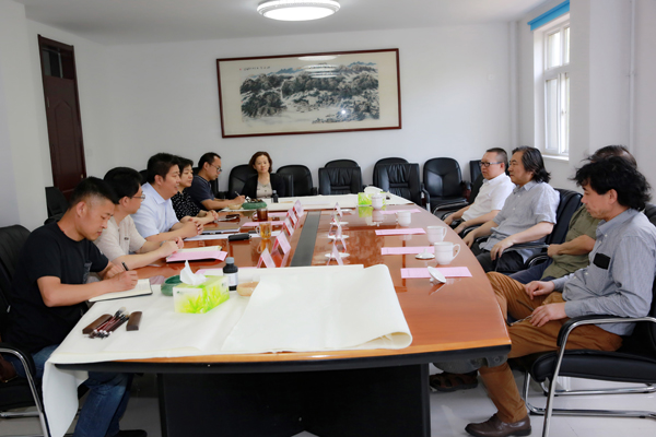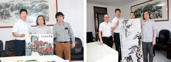 5月29日下午,山东美术协会主席、山东美术馆馆长张望,山东美术协会秘书长魏百勇,山东美术馆收藏部主任郭振宇,山东美术馆画家杨大鲁一行来学院考察指导,学院党委书记管洪锋、副院长姜欣、党委委员丁华、教务处和艺术设计系等负责人陪同。