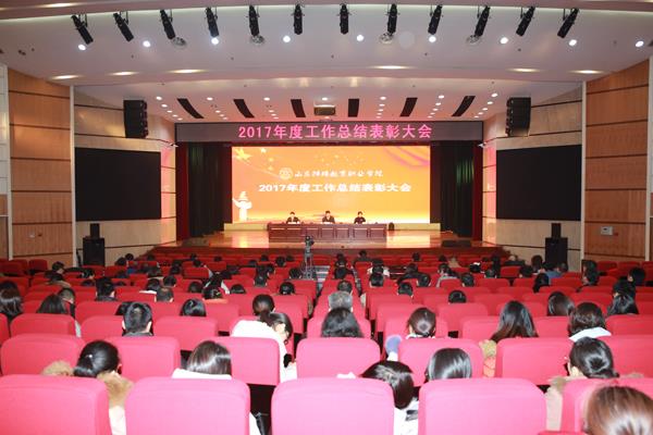 1月19日上午,学院在礼堂隆重召开2017年度总结表彰大会,全体教职工参加。