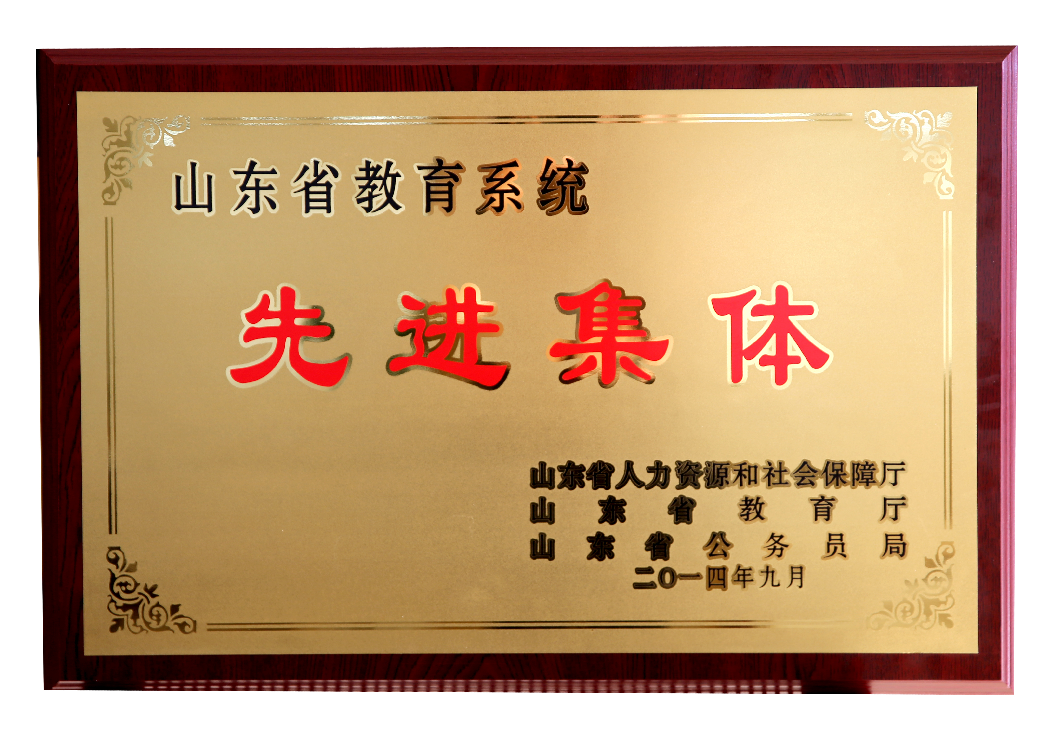 山东省人力资源和社会保障厅、山东省教育厅、山东省公务员局下发《关于表彰全省教育系统先进集体和先进个人的通报》(鲁人社办发〔2014〕105号),学校荣获“山东省教育系统先进集体”称号。