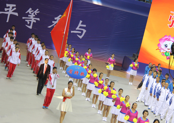 学校独立组团,以学校党委书记、校长王雯为团长,副校长张斌为副团长的运动代表团,共派出90名运动员参加田径、武术、盲人足球、足球、游泳、盲人柔道、飞镖、盲人乒乓球等11个大项的角逐。