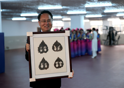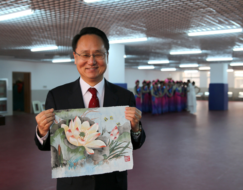 韩国驻青岛总领事黄胜炫先生与义拍所得的作品
