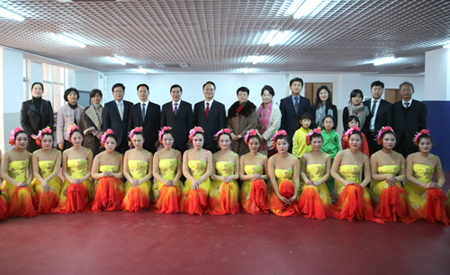 为了庆祝三八国际劳动妇女节, 3月7日,省外办党组副书记、山东省人民对外友好协常务副会长张继刚、省直机关妇工委主任陈莉、副主任訾建华以及省外办女职工40人,韩国驻青岛总领馆总领事夫妇及工作人员20人,与学校领导、女教工一起举办庆祝妇女节交流活动。活动在学校文体馆综合球类馆举行,省残联副理事长张志超出席。