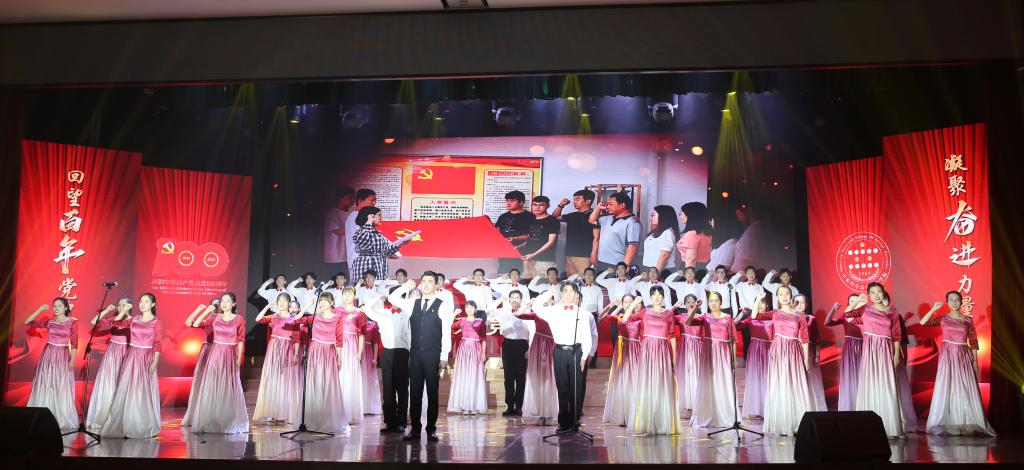 本次活动分为两个部分。首先,一堂特殊的党课拉开了庆祝活动的序幕。党课以情景剧的形式,融合了《南湖的船 党的摇篮》《血肉长城》《灯火里的中国》《光明中国》《我宣誓》等节目,采用了合唱、朗诵、舞蹈等多种艺术形式,带领观众共同回望百年党史,感受信仰的力量。