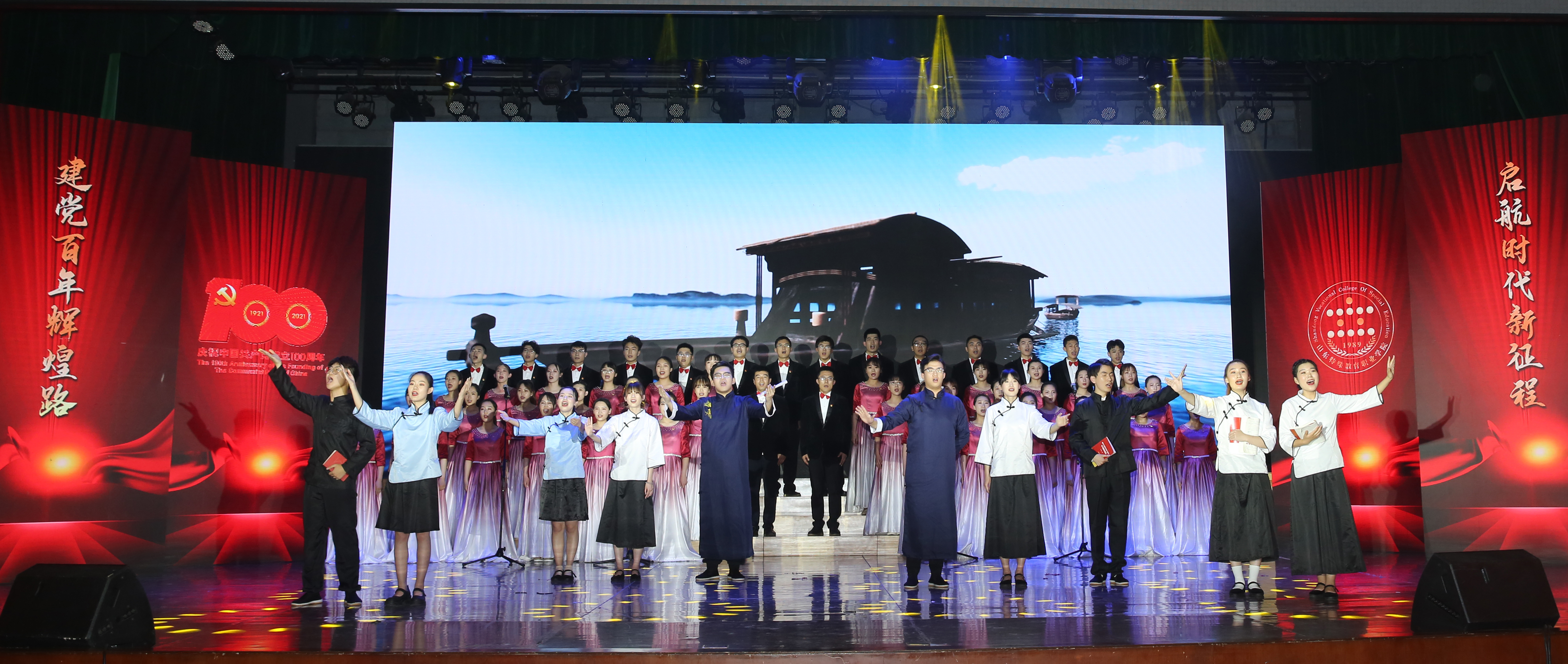 一首师生合唱《南湖的船 党的摇篮》展现了中国共产党栉风沐雨,砥砺前行,开创未来的伟大成就。