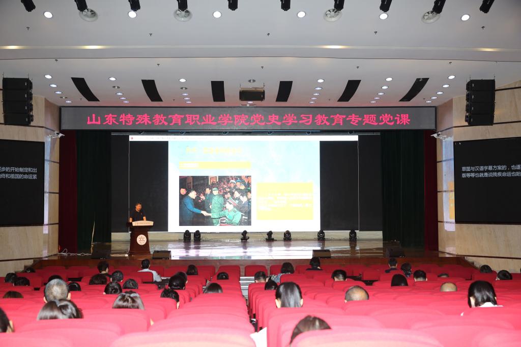 为庆祝中国共产党成立一百周年,推动党史学习教育往深里走、往实里走,按照学院党委统一安排,6月30日下午,党委书记管洪锋以《新中国史之残疾人教育的改革与发展》为题,讲授了一堂生动的党史学习教育专题党课。学院师生党员、入党积极分子、发展对象参加本次党课学习。