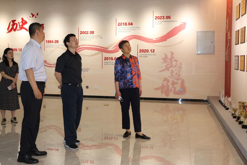 6月8日上午,中国残联办公厅主任杨代泽、综合处处长张宏坤、秘书处四级调研员张洪泉、文电处干部申旭然一行来到学院调研新校区建设使用情况和第七届全国残疾人职业技能大赛分赛场设置安排情况,省残联党组书记、理事长邹斌芳,学院党委书记管洪锋、院长李心沁陪同调研。