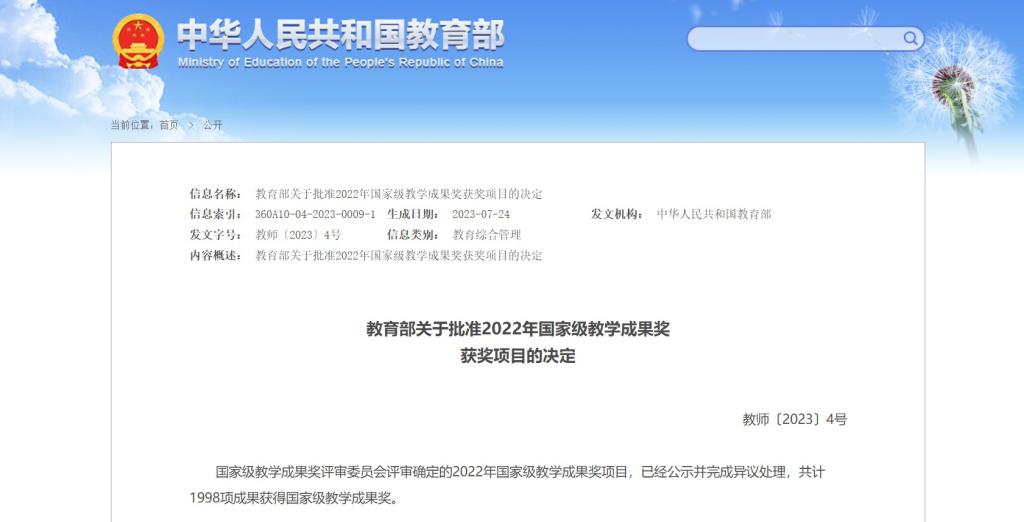 日前,教育部公布了《教育部关于批准2022年国家级教学成果奖获奖项目的决定》。kaiyun开云官方在线入口主持和参与建设的3项教学成果分别荣获1个一等奖,2个二等奖。