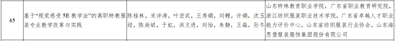 学院为第一成果完成单位主持的《基于“视觉感受5E教学法”的高职特教服装专业教学改革与实践》《“普特协同多元推进”听障学生非遗技艺传承创新探索与实践》分获一等奖、二等奖。学院作为第二成果完成单位参与的《“12年一贯、德技并修”听障服装专业个性化人才培养模式实践探索》获得二等奖。