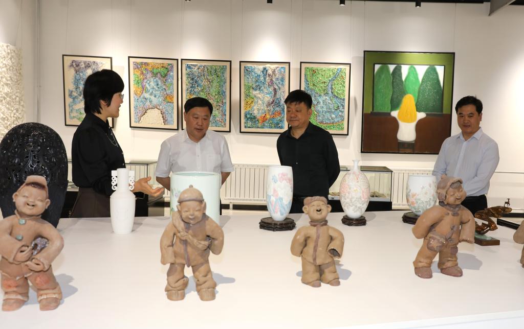 座谈会后,孙峻一行参观了学院展览馆,观看了学院师生创作的绘画、蜡染、编织、扎染、服装、衍纸等艺术作品,高度赞扬了残障学生的艺术素养和创作能力。