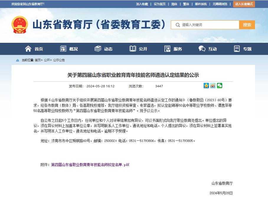 近日,山东省教育厅发布《关于第四届山东省职业教育青年技能名师遴选认定结果的公示》,学院服装艺术系教师刘芳通过了第四届山东省职业教育青年技能名师的遴选认定。