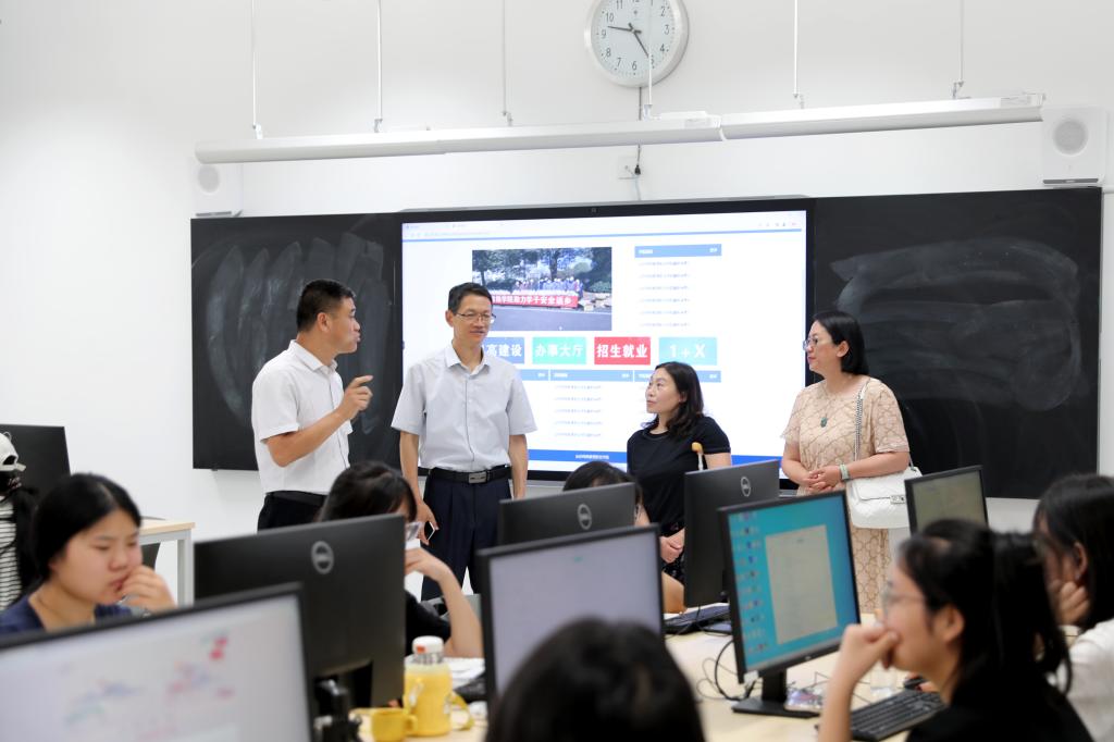 石红、李冠宏一行首先来到学院教学楼,深入各系教室、实训室,了解学院专业教学情况。随后,参观了学院文体馆、展览馆,实地了解了新校区建设使用情况,对学院基本办学条件和近年来取得的教育教学成果给予了高度评价。