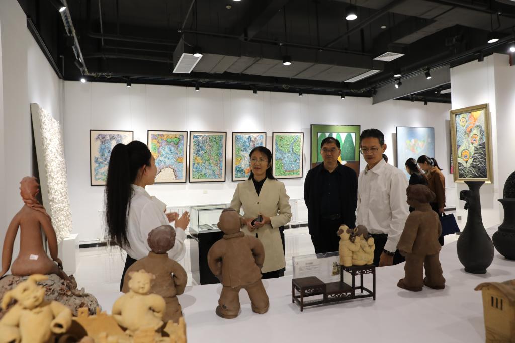 会后,严琳琳一行参观了学院展览馆,对师生的艺术作品给予高度认可,对学院人才培养、学生发展就业有了更深入了解。