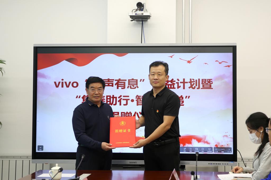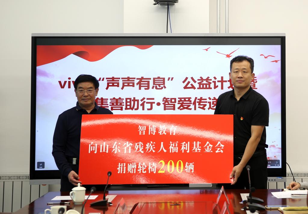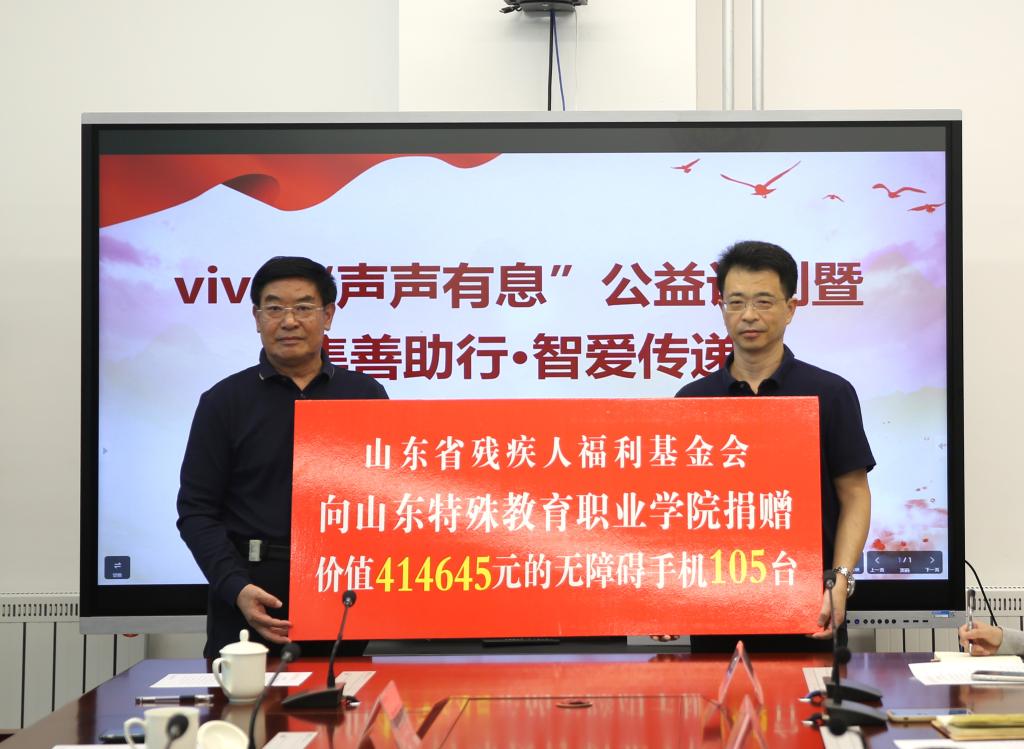 山东省残疾人福利基金会联合vivo集团向学院视障学生捐赠了105台助盲手机,智博教育集团向学院肢体功能障碍学生捐赠了部分轮椅,用实际行动传递了爱心与温暖。
