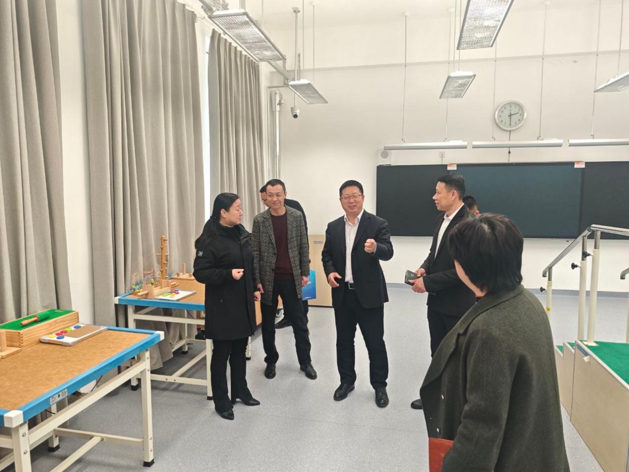 考察组一行来到医学康复系实训室,观摩学生康复治疗技术实操演示,深入了解医学康复系在校医合作、人才培养、实习实训、学生就业等方面的情况。