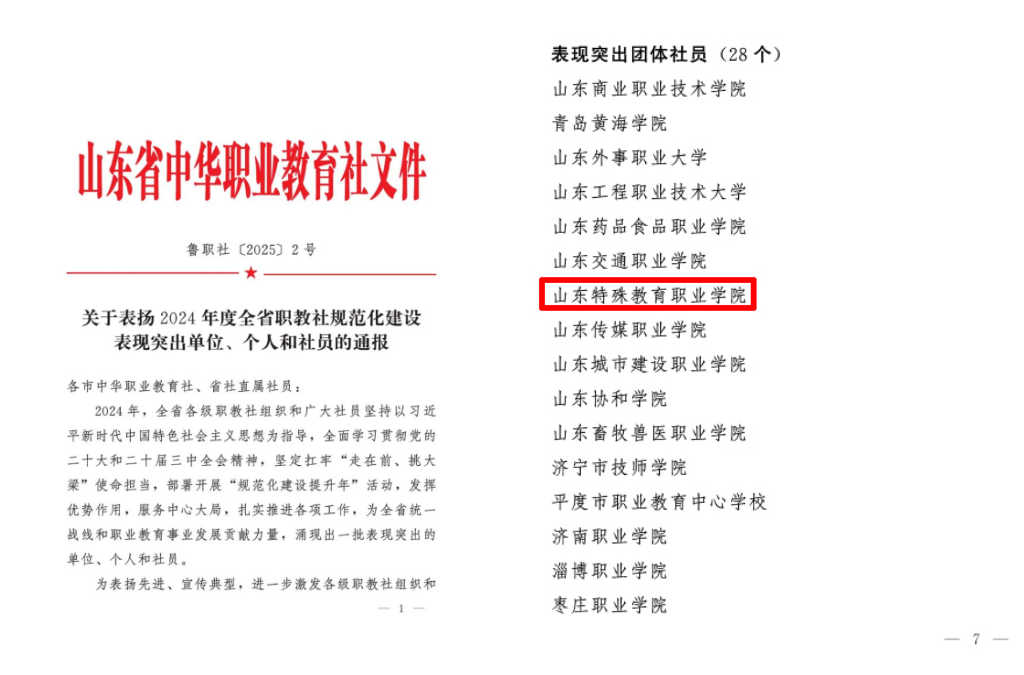 一直以来,在山东省中华职教社的大力支持下,学院积极弘扬和践行黄炎培职业教育思想,注重非遗传承与创新,以推动残疾人高等职业教育高质量发展为目标,不断完善“学—训—赛—评”实践育人体系,创新人才培养模式。多次参加“黄炎培杯”中华职业教育非遗创新大赛和山东省黄炎培职业教育创新创业大赛,非遗创新大赛累计获得一等奖7项、二等奖4项、三等奖2项、优秀奖3项,创新创业大赛累计获得一等奖1项、二等奖3项、三等奖2项。推动现代特殊教育职业教育与非遗人才培养的研究,《“普特协同 多元推进”听障学生非遗技艺传承创新探索与实践》获国家级教学成果奖二等奖。