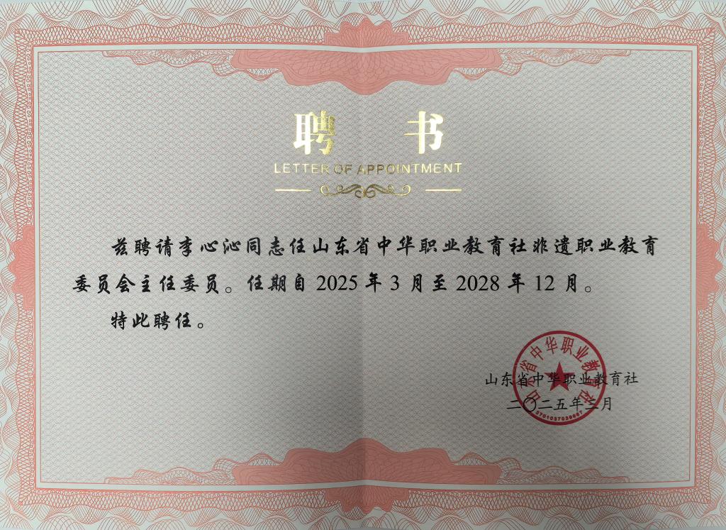 3月28日,山东省中华职教社三届三次社委会会议暨全省职教社工作会议召开。学院获评2024年度全省职教社规范化建设表现突出团体社员,学院党委副书记、院长李心沁当选山东省中华职业教育社非遗职业教育委员会主任委员。