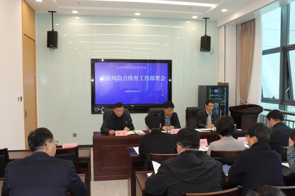 4月1日,学院在图书馆536会议室召开廉政风险点排查工作部署会,党委书记杨磊讲话,党委副书记、院长李心沁主持会议。