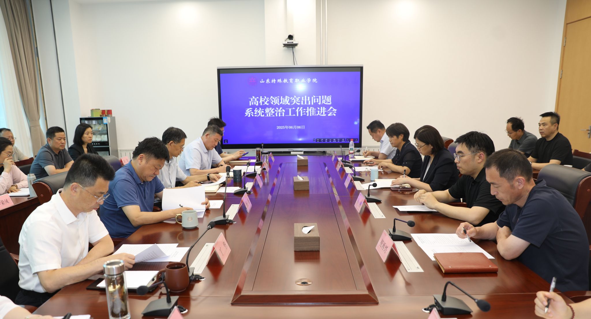 杨磊强调,深入开展高校领域突出问题系统整治工作,是贯彻落实党中央决策部署的重要政治任务,是落实教育强国战略部署的关键举措,也是解决学院当前发展瓶颈的现实需要和长远发展的必然要求。我们一定要高度重视,切实把整治工作落细落准落到位。一是要提高政治站位,深刻把握系统整治的重要意义。深刻认识系统整治工作的重要性和紧迫性,以高度的政治自觉和行动自觉,把思想和行动统一到省委教育工委、省残联和学院党委的部署要求上来,把开展整治工作作为增强“四个意识”、坚定“四个自信”、做到“两个维护”的实际行动,作为推动深入贯彻中央八项规定精神学习教育的重要抓手;二是要坚持问题导向,全面推进突出问题系统整治工作。要聚焦整治重点,深入开展自查自纠,着力整治招生、基建工程、招标采购、师德师风、后勤管理、科研经费使用、校医院等领域中的突出问题,通过建立健全制度体系,彻底解决风险隐患;三是要强化组织领导,以钉钉子精神确保各项整治任务落地见效。要压实工作责任,强化压力传导,加强监督检查,定期跟踪问效,从严追责问责,确保整治工作取得实实在在的效果。