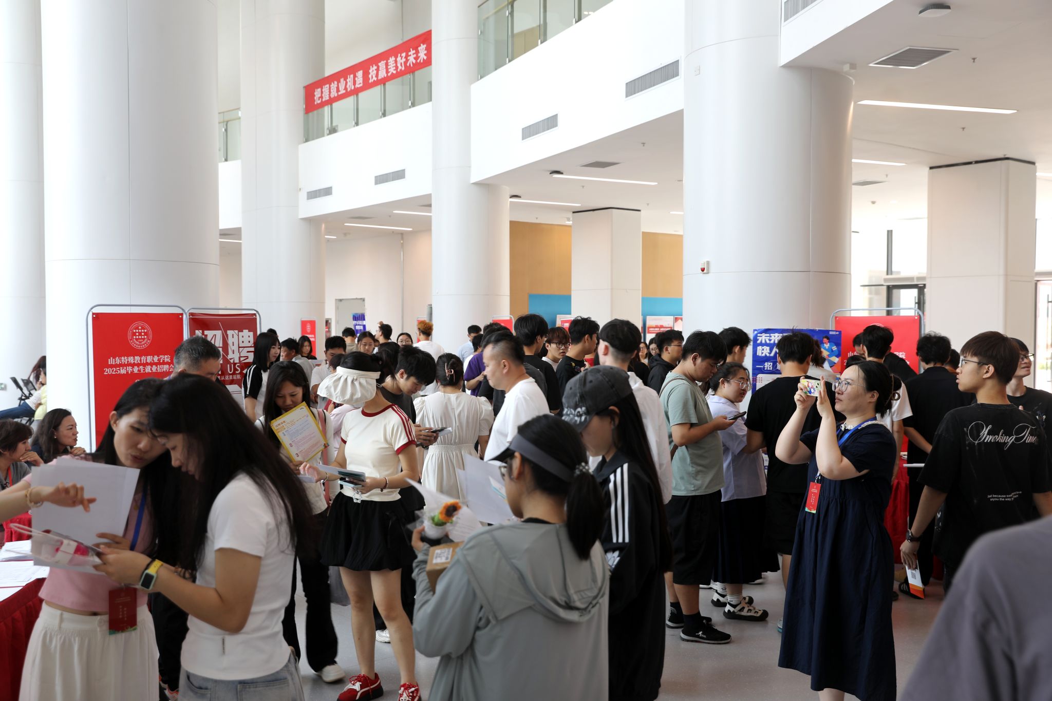 本次招聘会汇集歌尔股份有限公司、山东威高集团医用高分子制品股份有限公司、山东国舜建设集团有限公司、济南市安安特殊儿童康复中心、淄博大爱服装加工有限公司等43家优质企业参会,提供岗位需求900余个。2025届毕业生参加了此次招聘会,在校生也热情高涨,积极关注各用人单位招聘信息,提前了解招聘单位对毕业生的能力需求,为个人职业生涯规划和就业实践做好充足准备。