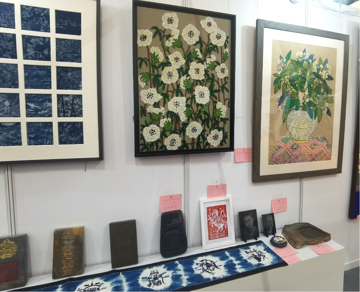 该展会自2009年创办以来已连续举办17届,本届汇聚300余家企业、超万件工艺品参展,围绕四大主线设8大特色版块,以创新展陈与互动体验推动“山东手造”向实用消费品转型。学院参展作品紧扣“工艺融入生活”的导向,展示传统工艺再设计、地域文创、非遗项目创新开发等多个类别作品。其中,蜡染、刺绣系列饰品、非遗主题文创砚台,既蕴含深厚的文化内涵,又具备实用功能与市场潜力,吸引众多观众驻足欣赏。展览期间,还特别设置的雕版拓印互动体验区,成为现场热点之一,参观者纷纷动手尝试,近距离感受传统技艺的魅力。