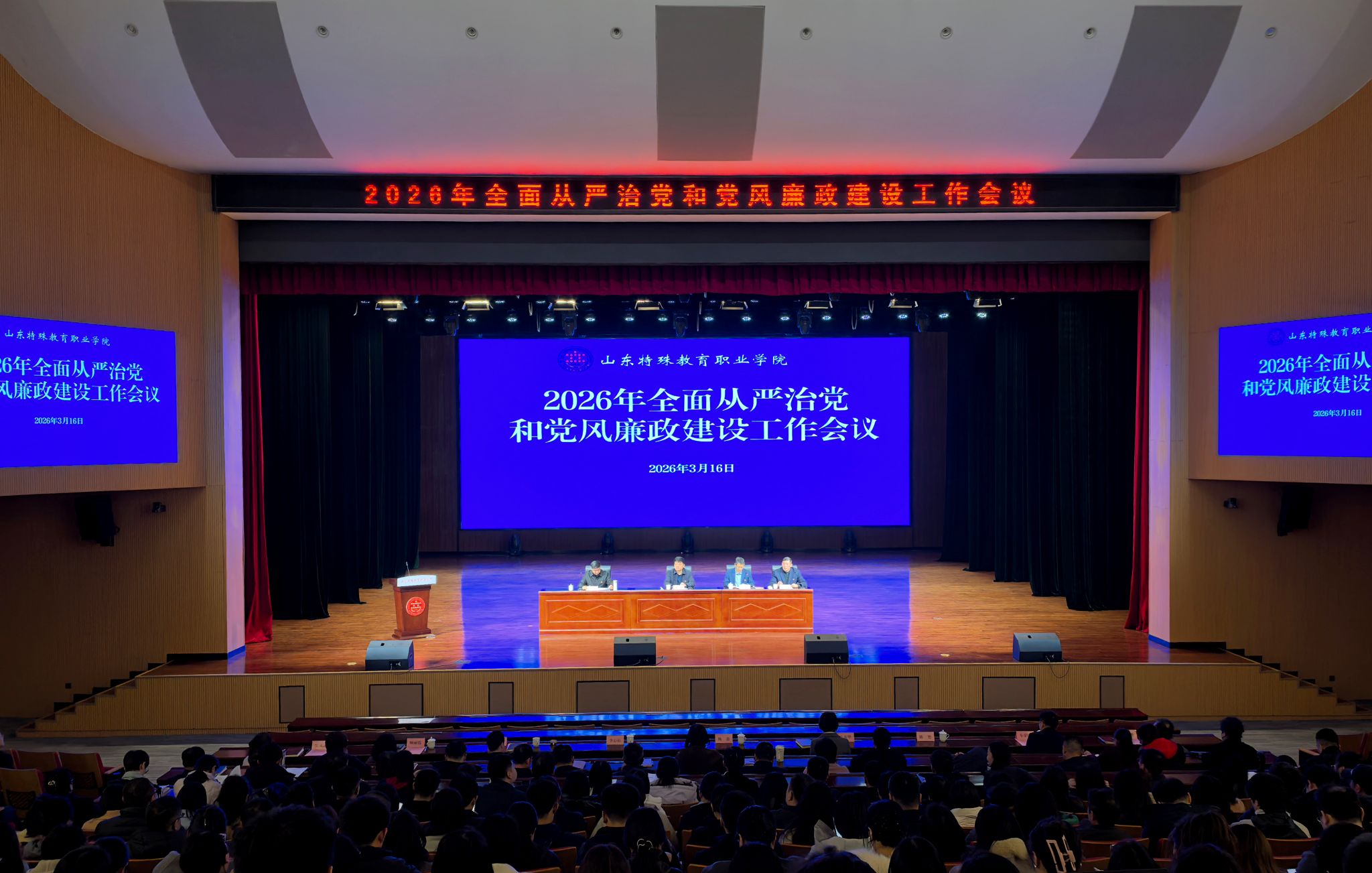 3月16日下午,学院组织召开2026年全面从严治党和党风廉政建设工作会议。学院党委书记杨磊讲话,省残联直属机关党委副书记、纪委书记、一级调研员陈刚到会指导并提要求,院长李心沁主持会议。