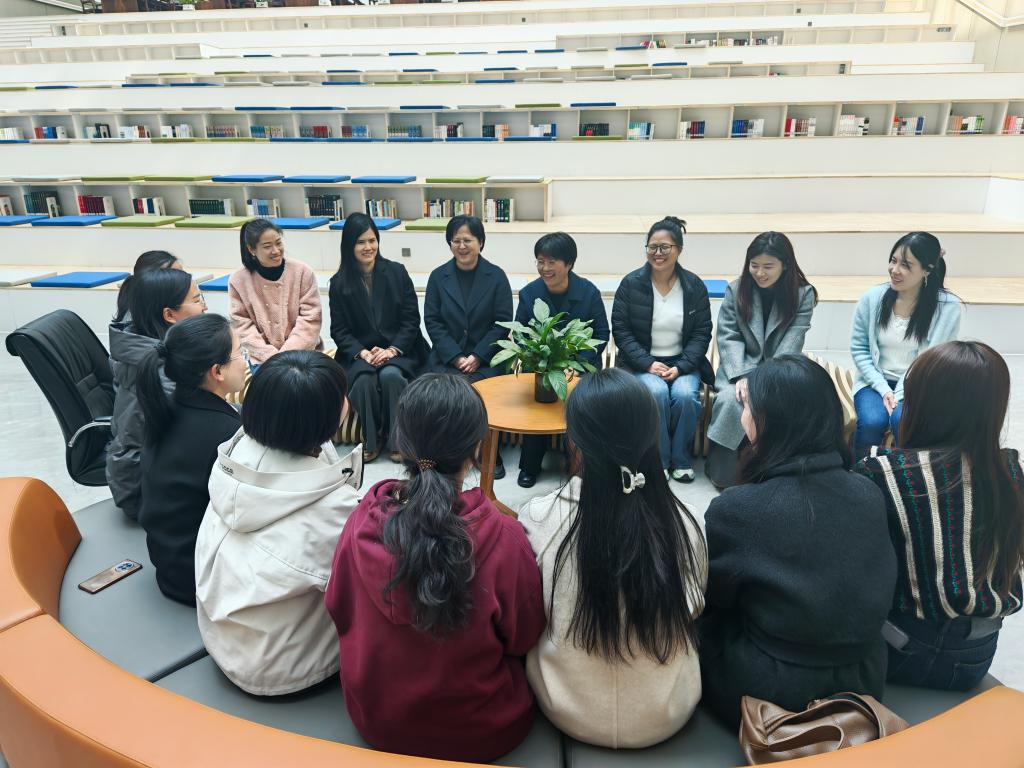 榜样引领聚力量,共话使命绽芳华。随后,“学巾帼榜样,绽芳华力量”座谈会在图书馆506室举行。学院党委副书记孔苏华出席并致辞,向全体女教职工致以节日问候,肯定她们在教育教学、管理服务等岗位上的突出贡献。座谈会邀请优秀女教师代表分享成长经历与育人故事,激励广大女教职工以榜样为镜,立足岗位、勇担使命,凝聚“她力量”。