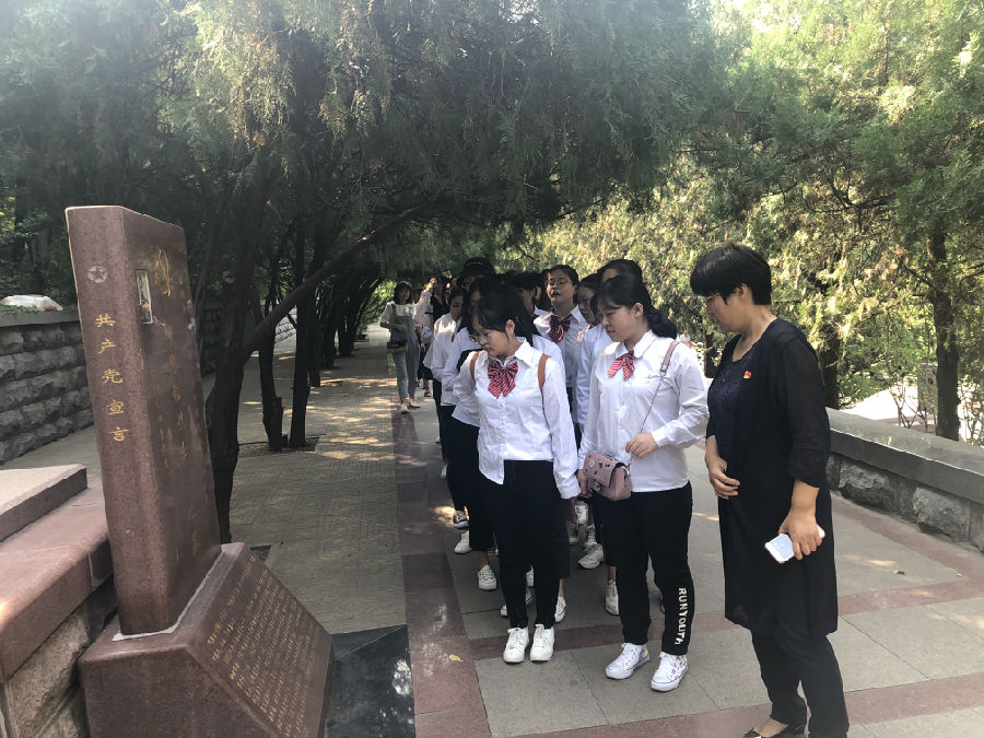 青松肃穆,翠柏低垂。在革命烈士纪念群雕前,全体师生庄严列队,肃立默哀,以表达对革命烈士最崇高的敬意。随后缓步进入墓园,怀着沉痛的心情瞻仰烈士墓碑,祭奠烈士英灵,感受当年的峥嵘岁月,体会先烈们的爱国情怀。在巍然矗立的英雄山革命烈士纪念塔前,全体党员和共青团员重温了入党、入团誓词,在庄严的宣誓声中再次表达了为党的事业奋斗终身的坚定决心。