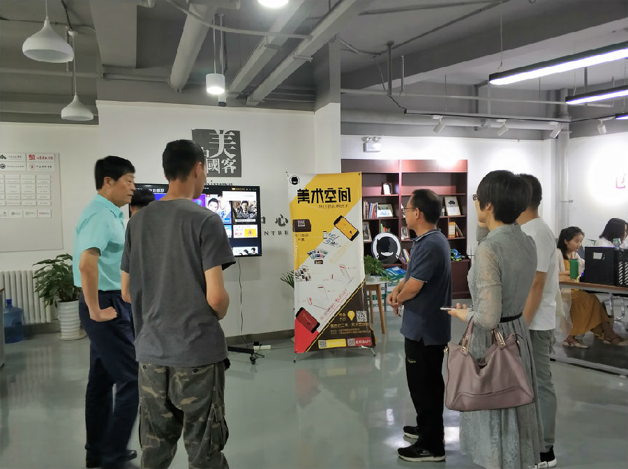 中国美客艺术创意产业园是由山东西城时光文化投资有限公司所运营的一所“互联网+艺术品”综合创意产业园,建筑面积三万多平方,配套设施齐全。艺术设计系教师对园区内的美学创客孵化基地、艺术衍生品创意产业基地、美术培训基地、艺术创作基地等进行了参观走访,随后与园区负责人崔齐东总经理进行了座谈交流。