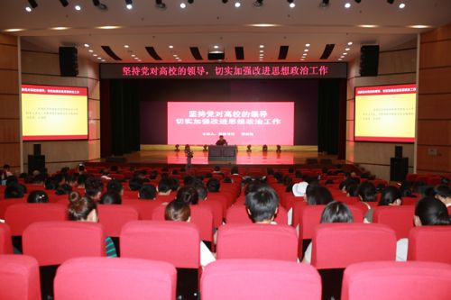 5月19日,学院党委书记管洪锋以“坚持党对高校的领导,切实加强和改进思想政治工作”为主题讲授党课,就深入学习贯彻全省高校思想政治会议精神作动员部署,学院全体教职工和学生干部参加会议。