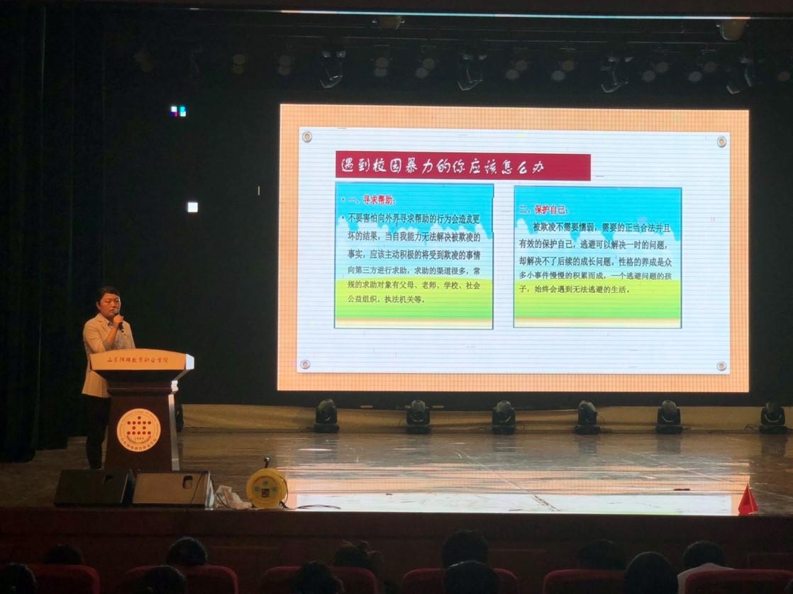 6月2日下午,学院医学康复系、信息技术系特邀济南市中正荣凯人民调解委员会张宜君律师来校,做“远离校园欺凌,共建和谐校园”的主题讲座,医学康复系、信息技术系共计300余名师生参加。
